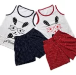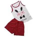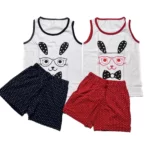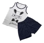 ست تاپ و شورتک زنانه نخی طرح گربه عينكي