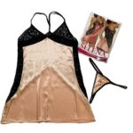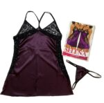 لباس خواب زنانه ساتن دو تیکه با شورت بکلس